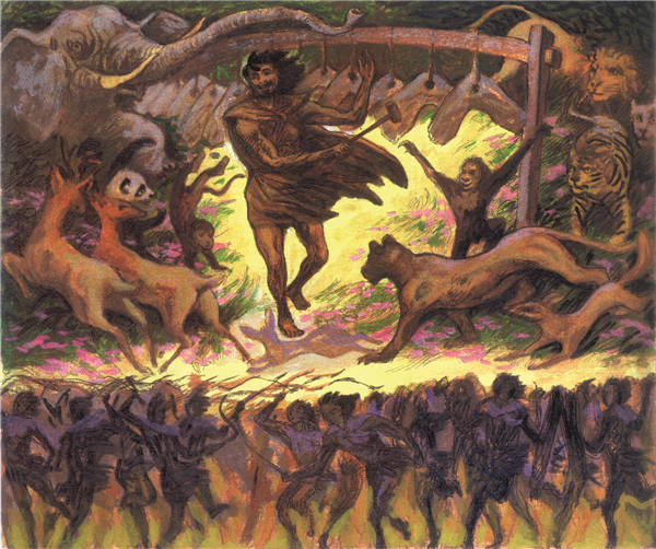 中国音乐的起源与图腾崇拜、与祭祀有关系。韶乐与对为王、为帝者的歌功颂德有关系,韶乐是颂德之乐,而乐中有舞,有歌,载歌载舞。