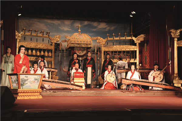 明清中和韶乐是否是从舜帝韶乐传承发展而来的,此韶乐是否彼韶乐,这是个很繁杂的命题,但其中有内在联系,有传承关系则是显而易见的,而其以明帝德、为帝王服务的特征更是明显。韶乐是我国古代音乐中为帝王唱赞歌的音乐是不存在疑问的。韶乐随姜子牙受封入齐,诸侯国也有了韶乐,韶乐也为诸侯王唱颂歌。孔子在高昭子家中观赏齐《韶》后赞曰“不图为乐至于斯”“学之,三月不知肉味。”《史记·孔子世家·述而》记载了这件事。在神乐署的展厅中我看到了古人画的孔子听韶图,很是兴奋。秦汉把《韶》定为庙乐,使《韶》在国乐中的位置达到了极致。庙,庙堂,朝廷、国家的意思。