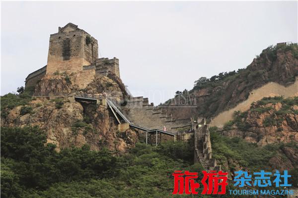 在明万里长城东端,山海关东北 7公里的山谷内有一段 V 形长城,有着整个万里长城独一无二的的绝景。长城在此犹如游龙巨蟒从崖顶逶迤而下,嶙峋险峻,直插谷底,又依山势起伏而上,自然形成两面“长城倒挂”之势,令人惊叹感慨不已。“长城倒挂”谷底为花岗岩石,两山间相距 68 米。长城从谷底沿山背而上呈“V”字形结构。这段长城为块石垒砌,墙高 4.7 米,宽2 米,总长度为 468 米,很多地段长城耸立达到 60°,内外墙体以白灰浆灌造,敌台以城砖砌筑。古人有诗描写此景 :“谁将匹练挂崖巅,三道关前吼瀑泉,峭壁摩天银河泻,晴空未雨玉虹悬”。 这里……