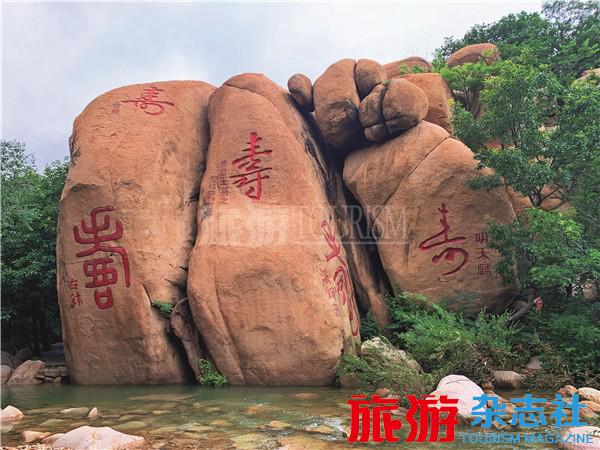 从悬阳洞出来之后有一条岔路,往上走只有一个景点关帝庙,我没有去看,直接选择了往下走,回到主路之后,穿过一片树林,很快就来到了长寿山最有名的寿字碑林。在一块块参天巨石上,雕刻着历朝历代书法名家所书写的“寿”字,是个非常好的拍照景点。长寿山的山石非常有特点,一路走下来几乎裸露在外面都是巨大的山石,有的浑圆,有的齐整,千姿百态,真是令人惊叹。