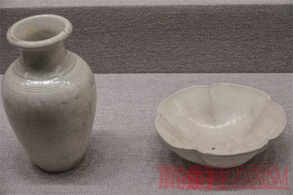 邢窑白釉刻弦纹瓶、邢窑白釉花式碗