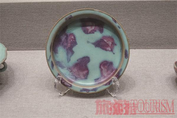 北宋至金钧窑天蓝釉紫红斑折沿盘