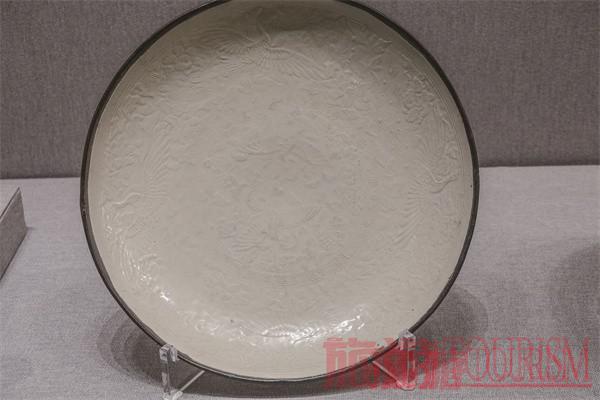 北宋“定窑白釉模印孔雀牡丹图盘”