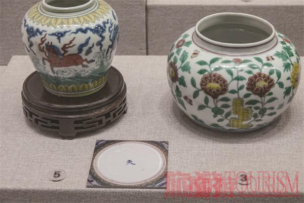 明成化斗彩(海水天马图罐、寿石化蝶图罐)