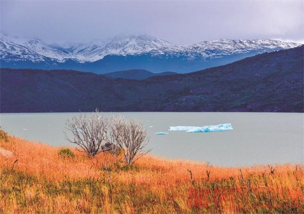 格雷冰川的蓝色冰舌由南巴塔哥尼亚冰原分出