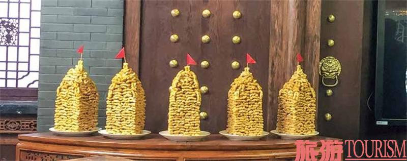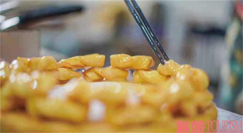 或许有人要说了,这蜜供不就是一堆蘸了糖的油炸面疙瘩嘛?话虽不错,但这堆面疙瘩里面的讲究可还真不少呢!在《清稗类钞》中对蜜供的描述是这样的 :“所谓蜜供者,专以祀神,以油、面做夹,砌作浮屠式,中空玲珑,高二三尺,五具一堂,元日神前必用之。”