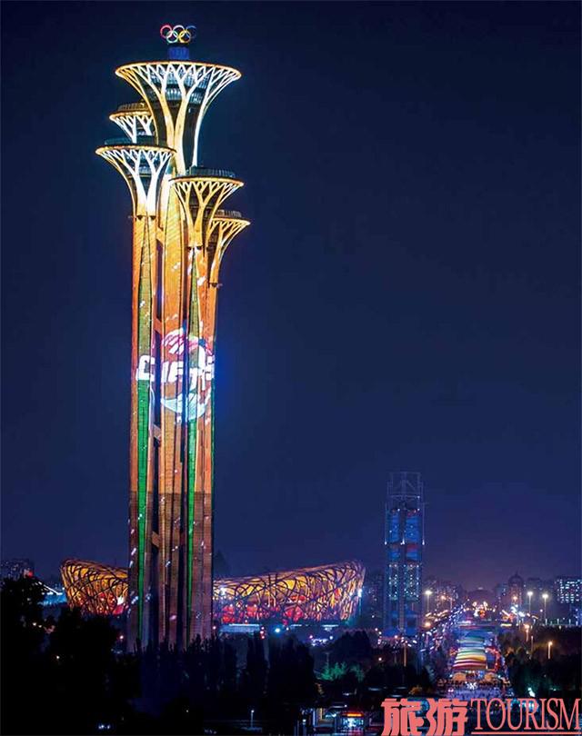 北京奥林匹克塔为目前中国第六高建筑,包括塔基大厅和 5 个独立的塔冠,塔体由 5 座 186 米至246.8 米高的独立塔组合而成,是世界上唯一一个由 5 个塔独立组成的观光塔。5 个高低不同的塔身在空中似合似分,造型独特,蕴含着奥运五环蓬勃向上的精神风貌。经国际奥委会批准,北京奥林匹克塔 1 号塔的最高点和塔西侧主门口处分别设置奥运五环标识巨型雕塑。北京也是第二座独立且永久安装奥运五环标识的城市。(本专题文图由北京市文化和旅游局提供)