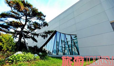 步入艺术中心,一座园林景观中错落有致的典雅小楼迎面而来。建筑线条曲直交错,灰色悬山顶与原木色幕墙相得益彰,既有传统园林的韵味,又不失现代时尚感。