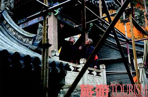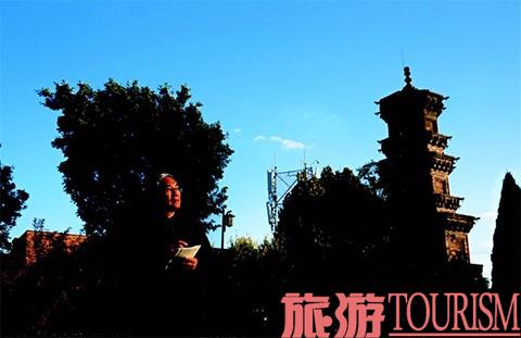 跟随罗老师边看边听他的解说,受益匪浅。天宁寺双塔的建筑结构严谨,设计巧妙,浑朴而不失精细,凝重而透出飘逸。在民间,天宁寺双塔俗称为“雌雄塔”或“公母塔”。“雌”和“雄”,是生物界才有的概念,为什么将这对双塔叫做雌雄塔呢?罗老师细致地为我们从双塔的细节处一一对比进行了讲解。
