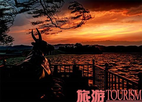 从新建宫门步入颐和园,正对着的就是昆明湖游船码头。码头南侧是颐和园铜牛,用来镇水患。铜牛后面的十七孔桥,连接东堤与南湖岛,是中国皇家园林中跨度最长的桥。十七孔桥与铜牛都是颐和园最著名的景点,每年冬至前后,十七孔桥的“金光穿洞”更是吸引了众多摄影爱好者。当落日余晖把十七孔桥的桥身和桥洞全部照亮时,此起彼伏的快门声和人群中兴奋激动的欢呼声与寒冷的冬日形成了强烈的反差……
