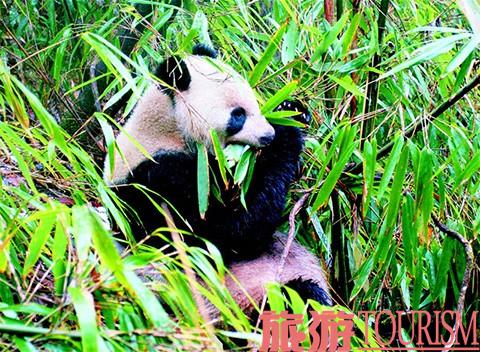 顺着大熊猫的足迹链,我们爬上哨所背后的山梁上,就在向四周查看的时候,突然发现一只大熊猫在山脊上迎面向我们走过来,嘴里还叼着一大把竹叶。在距离我们大概两三米的地方才偏向侧坡面离去,然后在竹林间自顾自地咬食巴山木竹。感恩幸运女神的眷顾,让我们得以偶遇野生大熊猫,成为弥足珍贵的记忆铭刻于心。
