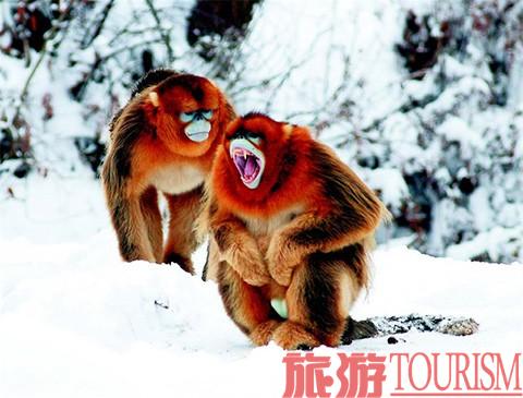 川金丝猴周身覆盖着柔软的金色长毛,在阳光的照耀下熠熠发光,仿佛披着一件金黄色的“披风”,这正是它被誉为“金丝猴”的原因。最有特色的是它的鼻子,鼻孔朝天长着,所以常被叫作“仰鼻猴”,这其实是它们为适应高海拔地区的缺氧环境而进化出的奇特相貌。