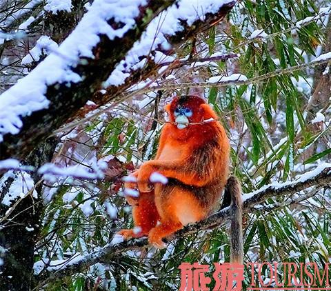 川金丝猴是典型的树栖动物,生性活泼好动的它们擅长在林间攀爬和跳跃,其矫健的身姿让人啧啧称奇。偶尔,它们也会下到地面活动,捡拾掉落至地面的食物或去溪流边喝水,这时的雪地里便会留下它们清晰的足迹印。只见一个个大小不一、像极了人手掌印的图案散乱地出现在雪地上,这正是川金丝猴的足迹……