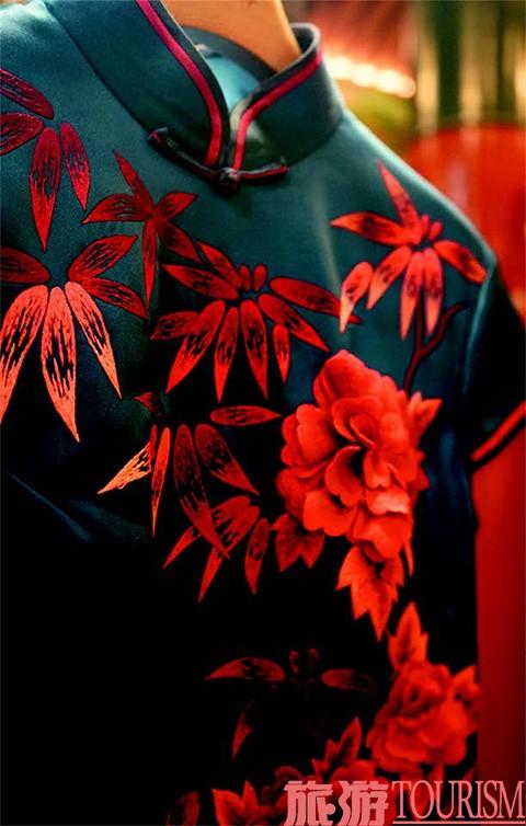 此时,正赶上一位顾客在试穿刚刚定制好的旗袍,于是汪超演示起相关环节。首先是选料,需要了解服饰的应用场合、顾客的肤色等信息。综合分析、规划出盘扣风格、图案设计、领形衣长等细节。此外,根据面料不同,经纬纱走向不一,后续的制作环节也有差异。