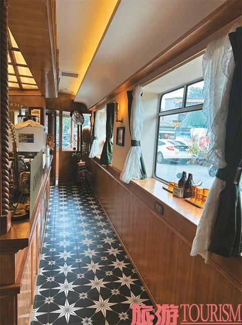 沿南新华街向北,从五道街继续往西北方向前行,胡同口不远处就可以看到一家复古车厢咖啡厅——CHOOCHOO。古铜色的“车头”便是咖啡厅的入口,走进店内,每一处都精心布置过:复古座椅、美式旅行皮箱、老款自行车、精致的吧台,让人从胡同的喧嚣中抽离出来,仿佛登上一列开往旧时代的时光列车。