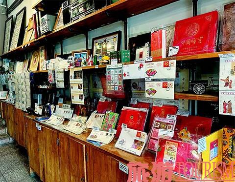 沿铁树斜街走,这条胡同不仅展示着寻常人家的烟火气息,还有很多意外的惊喜,比如处于北京继电器厂旧址里的中国邮政未来邮局。这样一座看似老旧的邮局里,却承载着很多对于未来的期许。传统的墨绿色是建筑外立面的主色调,门牌上标有“中国邮政未来邮局”和“未来咖啡”。正门旁是一辆永久牌的二八自行车,后面挂着儿时经常看到的送信的信包,回忆一下子涌上心头。邮局和咖啡是互通的区域,靠墙的展台上放置了各式各样与邮政相关的明信片、信封和文创产品,购买明信片后可以盖章……