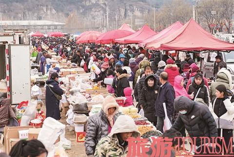峪口大集占地广阔,分区清晰,从应季的野菜鲜果、各类菜苗花种,到农具家什、春装布鞋,农家开春所需一应俱全。城里来的游客则兴致勃勃地辨认着各种秧苗,就连顺义、密云的人也常驱车赶来,带走一把春鲜,也带走一份踏青的愉悦。