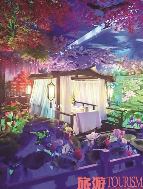 从西四环南路拐进丰体附近,“儒宴”的木匾便映入眼帘。推门而入,瞬间从北方的硬朗切换到江南的温婉。水榭亭台错落,木船造型的卡座静卧“水面”,纱帘轻垂,编钟与青瓷点缀其间,连空气都似浸着烟雨的湿润。